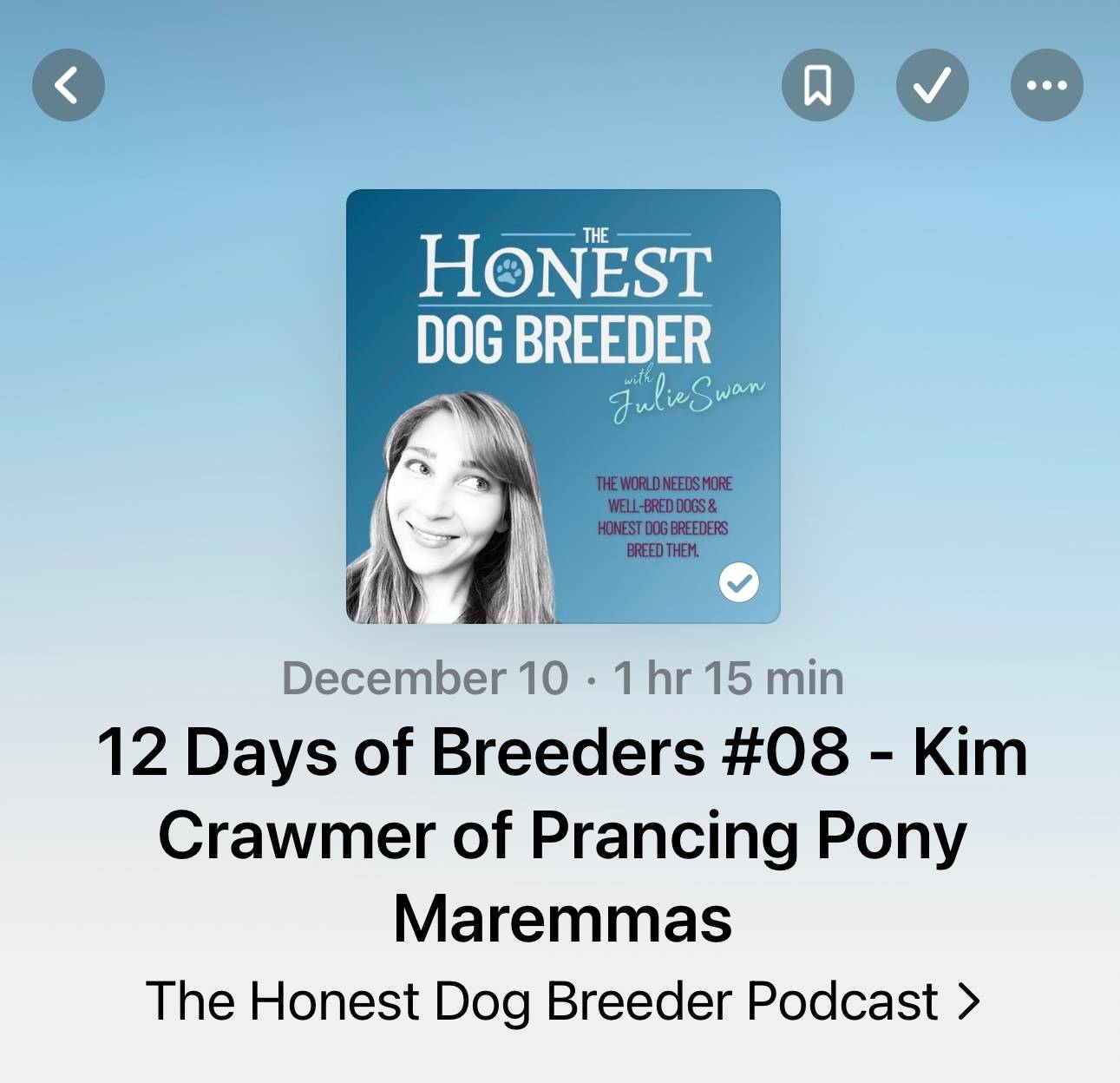 Julie is doing a 12 Days of Breeders series this month, and she asked if I wanted to be on the show. Of course, I jumped at the chance! I got to share all about my amazing Maremmas – how I started breeding dogs (Maremmas weren’t my first breed), why I chose Maremmas for my farm, what matters to me, how I raise and train my pups and support my clients, and so much more. I got to tell stories about some of my wonderful puppy clients and how much I treasure them and enjoy hearing from them even after their pups are grown.