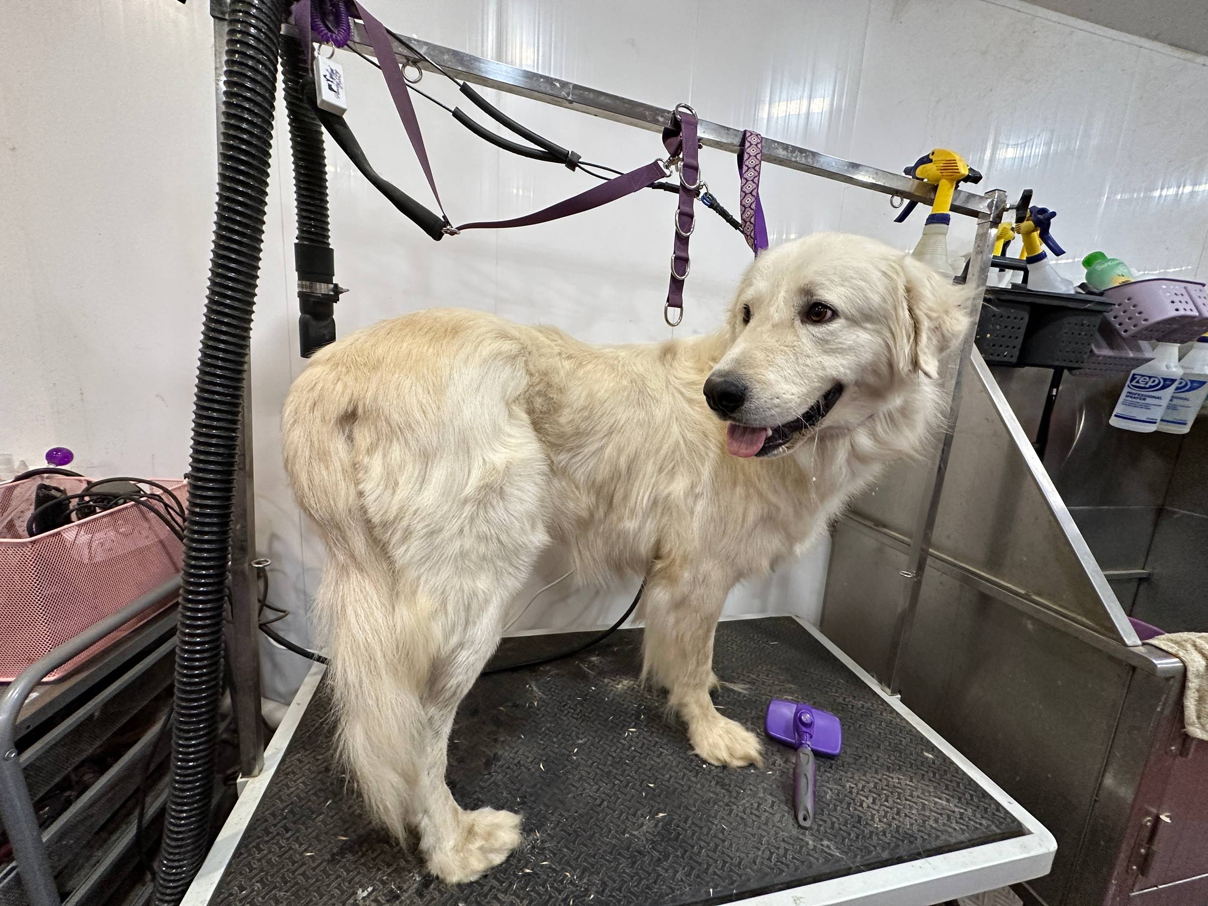 My lovely Italian imported Maremma, Pegaso has an appointment at the vet early Wednesday morning, so he had a quick grooming session Tuesday night. Pegaso is such a beautiful and sweet boy. Importing him from Italy two years ago was a dream come true. It felt like a significant accomplishment as a breeder. I still remember how excited I was when I picked him up at the airport. Excited enough that I braved LA traffic and LAX by myself to get him, something I would never do for any other reason!
